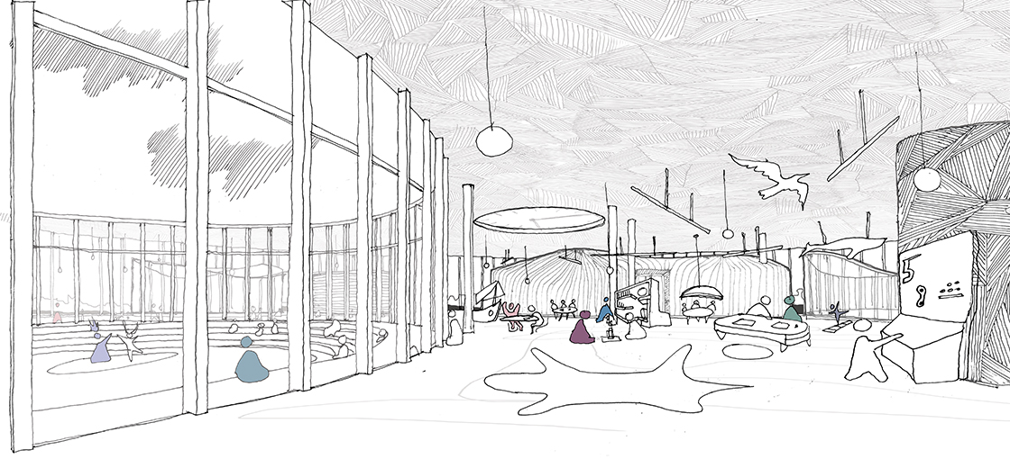 Comme dans le champs du théâtre, nous proposons d’étendre les territoires au lieu de les séparer, de créer des connections et intensifier les relations. Afin de concevoir une école où le texte n’est pas le plus important, et d’accorder plus d’importance aux émotions, à l’énergie et aux relations. Nous voulons créer une école qui donne de l’importance à l’essence humaine. Ainsi les interactions entre l’extérieur et l’intérieur , entre les classes et les disciplines sont renforcées.